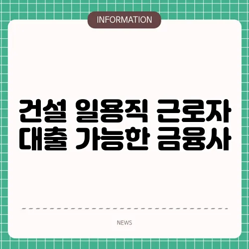 건설 근로자 대출 가능한 금융사와 특징